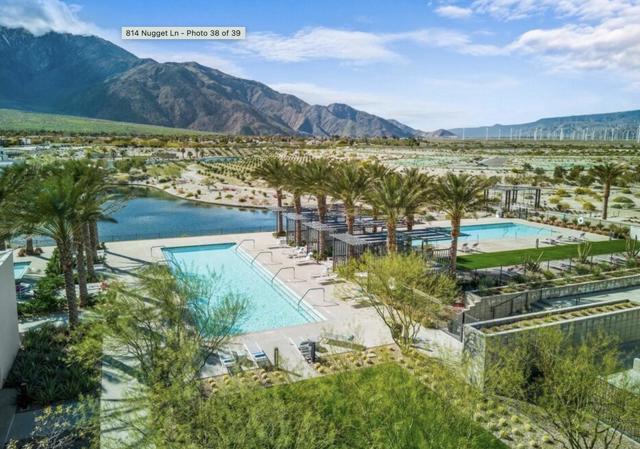 Discover modern luxury and sustainable living in this beautifully designed 3-bedroom, 4-bathroom home, set on a premium lot in the sought-after Miralon community of Palm Springs. Built in 2022, this 1,894 sq. ft. residence features designer upgrades, stunning mountain and lagoon views, and a private pool--all crafted for comfort and style.Offered fully furnished and move-in ready, this home is just 10 minutes from Downtown Palm Springs, providing easy access to top dining, shopping, and entertainment. With solar power and an EV charging station, it offers both efficiency and modern convenience.As part of the exclusive Miralon community, you'll have access to unparalleled amenities that make this feel like a true resort experience. Start your day with yoga or a workout at the state-of-the-art gym, cool off in one of two expansive infinity pools overlooking the majestic mountains, or relax in your own private pool with a stunning lake view. Savor a drink at the on-site bar and lounge, wander through lush olive orchards, or pick fresh herbs from the community garden and cook like a chef in the state-of-the-art community kitchen. Enjoy scenic walking trails that wind around the tranquil lakes, perfect for morning strolls or sunset walks. This pet-friendly oasis also features two dog parks, giving your furry friends space to run and play. Don't miss this exceptional opportunity!