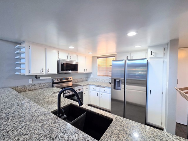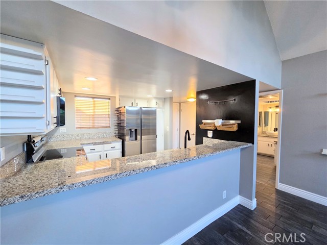 Beautiful 1-bedroom, top-floor condo located in Queen’s View Commons, a private, gated condominium community just blocks from downtown Long Beach and minutes from the beach. This well-maintained community offers secured entry, elevator access, gated covered parking, and a variety of amenities designed for comfortable living. Unit #306 features an open and airy layout highlighted by dramatic 15-foot vaulted ceilings in the living area, creating a bright and spacious feel. The interior has been updated with a modern paint scheme, laminate flooring throughout the main living areas, and plush carpeting in the bedroom. The kitchen is thoughtfully designed with ample cabinetry, granite countertops, and clean, modern finishes. It comes fully equipped with stainless steel appliances including a stove, dishwasher, microwave, and double-door refrigerator with water and ice. A convenient breakfast bar opens to the living space, perfect for casual dining or entertaining. Just off the entry, you’ll find a large walk-in storage closet providing excellent additional space. The living room opens to a private third-floor balcony, offering neighborhood views and a great outdoor retreat. The bedroom is spacious and filled with natural light, featuring a large window and a walk-in closet. The bathroom includes dual vanity sinks, granite countertops, a large mirror, and a separate shower area, along with a skylight that brings in natural light. Additional features include an in-unit stackable washer and dryer, secured parking with carport storage, and included utilities such as water, trash, and basic cable (transitioning to Wi-Fi service estimated in Summer 2026). Community amenities include a patio with BBQ area, community room, bike storage, gated visitor parking, and controlled access throughout the property. Ideally located within walking distance to Pine Avenue dining, entertainment, and public transportation, this home offers the perfect blend of coastal and city living.