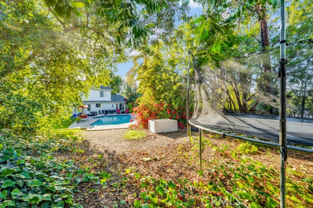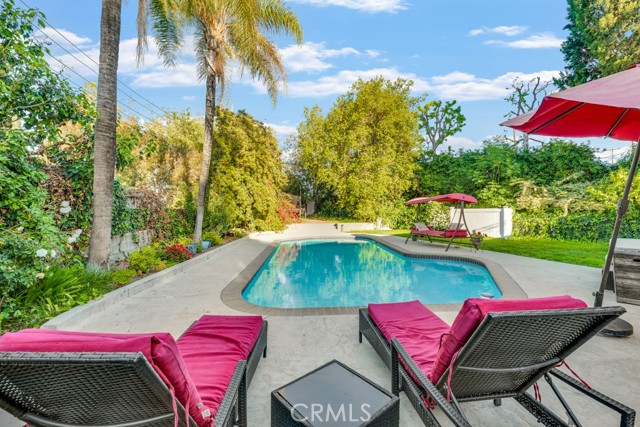 This luxurious 5 bed, 4 bath (3 full & 1 half) home boasts an open floor plan, recessed lighting, and a modern color scheme. Enjoy the cozy front porch, circular driveway, vibrant landscaping, and premium finishes. Inside, find stylish flooring, crown molding, and an expansive living room with a marble fireplace and custom cabinetry. The open concept kitchen features granite counters, and a wine refrigerator, with a dining area overlooking the backyard. The fully enclosed backyard is perfect for entertaining with a pool and lush landscaping. Upstairs, two primary suites offer serene retreats, including a main primary with a balcony and spa-style bathroom. Three additional bedrooms are downstairs. The exterior has been freshly painted for a pristine look. Conveniently located within walking distance to El Camino Real Charter High School and Hale Charter Academy.