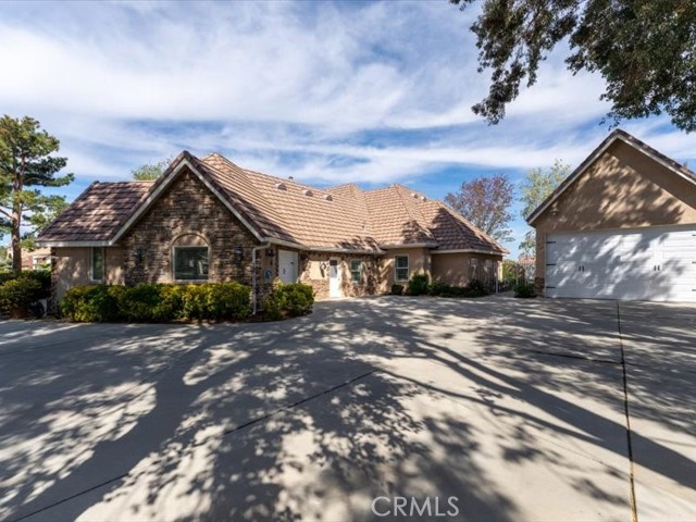 This beautiful Custom Equestrian Estates tudor home is situated on 1.58 acres and located at the end of a cul-de-sac, offering plenty of privacy and space. Built to last with high performance 2x6 exterior wall construction for enhanced structural integrity. The Peaked roofs and stone will amaze you. Interior travertine stone flooring, large tempered windows, high ceilings, and custom Avalon wooden shutters. Formal dining room, and large great room is complemented by a wood burning fireplace, open kitchen, and granite countertops. With a large center island, solar tube lighting, vegetable sink, and walk-in pantry. The Master Bedroom provides separate backyard access, and includes a large jacuzzi tub next to a two-way gas fireplace . The master walk-in large shower is equipped with dual shower heads and body spray, you will enjoy the two walk-in closets that have a combined 200 sf. of space. Two large bedrooms are located on the opposite side of the house with walk-in closets and a Jack & Jill bathroom, each having their own dedicated sink and linen cabinet. The fourth bedroom also has a walk-in closet, outside entry/exit into the backyard, and a dedicated bathroom for a guest spending the night or a live-in relative. The home is equipped. with a hot water circulator-providing for instant hot water. Room to Exercise (spin biking, yoga, etc) is ample in the gameroom that leads to the first garage where you can store your bikes, and/or park your motorcycle and vehicle. This property also hosts two detached garages, both 2x6 construction. The first 20 X 30' (600 sf) garage is located next to the house and the second garage with a dedicated entry/exit off Ave M-8 is 70'X 35'(2,450 sf) plenty of room to store your vehicles, boats and toys; or space to operate a business. Also has its own dedicated RV dump station and 30 AMP RV electrical hookup with water access . Original certified architectural and engineering plans will be sold with the home.