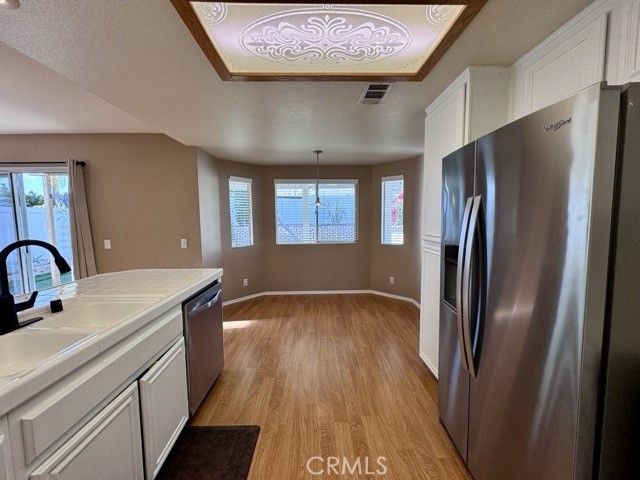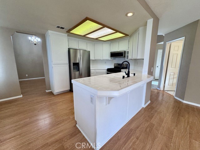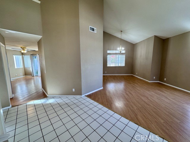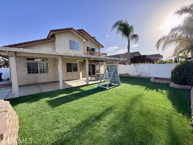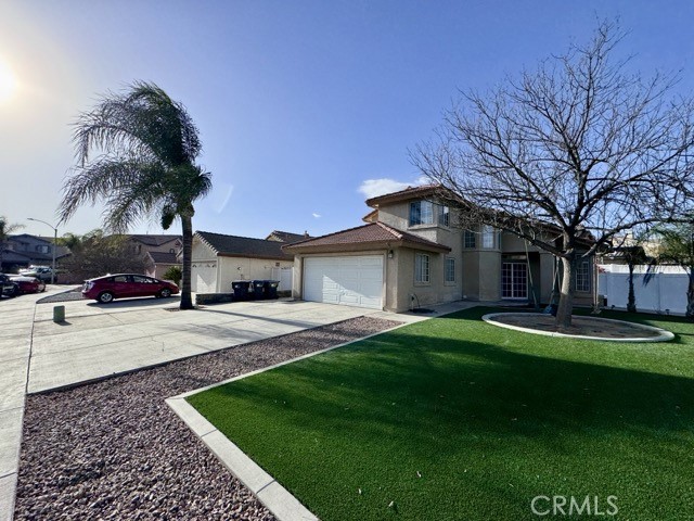 Welcome home to this beautiful 4 bedroom, 3 bathroom home in Murrieta, situated on a corner lot with low-maintenance landscaping and an attached two car garage, available for lease! Upon entering, you are greeted by soaring ceilings and a neutral color palette that creates a bright and inviting atmosphere throughout the spacious 1,789 sqft of living space. The kitchen features white cabinetry, tile countertops, stainless steel appliances, and a breakfast bar for additional seating. It flows seamlessly into both the dining nook and the cozy family room, which is centered around a charming fireplace and includes a sliding door leading to the backyard. The main floor also offers a bedroom, a full bathroom, and a convenient laundry room. Upstairs, you'll find the remaining bedrooms and bathrooms. The primary suite is a true retreat, with abundant natural light streaming through the patio slider, high ceilings, and a spacious walk-in closet. The ensuite bathroom offers dual sinks, a soaking tub, and a separate shower. The expansive backyard is perfect for outdoor living, featuring artificial turf, a large covered patio with ceiling fans, and a spacious open patio area. Don't miss the chance to experience the charm and convenience this home has to offer, schedule a showing today! Located near freeway access, schools, shopping, dining, and more.