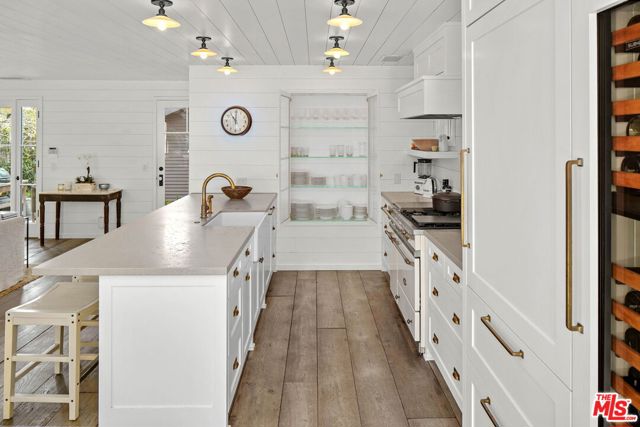 Nestled in Venice on a highly coveted walk-street just blocks from Abbot Kinney and the beach, 821 Nowita Place presents a rare opportunity to reside in a stunning 3-bedroom, 3-bathroom designer-renovated Craftsman home. The fenced front yard immediately captivates with lush landscaping, a stone walkway and an inviting seating area set around a fire pit, all leading up to the striking, Dutch entry door. Sunlit and spacious, this impeccable home boasts effortless indoor-outdoor living, allowing you to bask in Southern California's year-round sunshine. With a blend of modernity and historical roots, the home features tasteful touches and high-end finishes, including reclaimed hardwood floors, shiplap walls, custom lighting, unique kitchen hardware and home tech like the security system with cameras and coded door access. The centerpiece of the main level, the seamless kitchen opens out to the living areas and features top-tier appliances including a wine fridge. Upstairs you'll find two bedroom suites, inclusive of the primary, and the laundry area. A serene retreat, the spacious primary suite has high vaulted ceilings, a reading nook with window seat, a fireplace and custom pass-through closet that leads to a marble-clad spa bath with separate shower and soaking tub. Off the rear deck is the lush backyard, offering the ideal outdoor entertaining space complete with a sleek hot tub, dining patio, BBQ grill, and access to two parking spaces. A converted garage with the same finishes as the main home provides flexible living space and may be used as a bedroom, home theater (projector included!), a studio, and more! Just moments from Abbot Kinney and the infamous Venice Beach boardwalk, this peaceful oasis has convenient access to the area's best dining, shopping and entertainment offerings including the Venice Farmers Market, Erewhon and Gjelina. Don't miss this rare opportunity to live out your dream California coastal lifestyle!