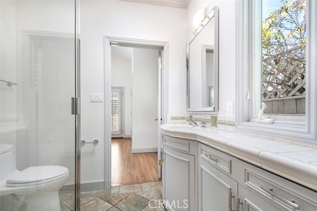 WELL MAINTAINED BEAUTIFUL SPANISH DESIGN SINGLE FAMILY HOME IN THE HEART OF WEST HOLLYWOOD! Completely Upgraded throughout. Enter into this beautiful home with REAL HARDWOOD FLOORS THROUGHOUT THE HOME! As you enter into the Formal Living Room with a Wood Burning Fireplace. HUGE and very OPEN UPGRADED Kitchen with NEW QUARTZ COUNTERS, GLASS BACKSPLASH AND CABINTRY --LOTS OF CABINETS FOR STORAGE. All Stainless Steel appliances. NEW GAS COOKTOP, Microwave and Dual Oven. Dishwasher and Refrigerator. HUGE CENTER ISLAND with a Single Basin Sink and lots of STORAGE. Skylight in the Kitchen brings in lots of NATURAL LIGHT! Home comes with WASHER AND DRYER (in Kitchen in cabinets). Great BREAKFAST BAR with room for a couple of bar stools. GREAT AREA FOR ENTERTAINING! OPEN from the Kitchen is the very SPACIOUS, LARGE FAMILY ROOM WITH A SEPARATE AREA FOR YOUR DINING ROOM. This room has a big closet for more storage. Very HIGH VAULTED CEILINGS IN Family room with recessed lights. You have 2 BACK Doors off the Family room which makes it great for ENTERTAINING and access to the very "private backyard with grass, rose garden with a patio for outside dining". The other door provides access to the extra wide driveway. The home has 2 MASTER SUITES (both EN-SUITES) with HIGH CEILINGS AND CEILING FAN, MIRRORED CLOSETS (very deep closets). The larger Master Bedroom Bathroom has a Tub/Shower combo and a Skylight bringing in lots of NATURAL LIGHT. The other Master Bedroom is a Jack and Jill shared with the Family room and has a "large, enclosed shower" 3/4 shower. Both bathrooms are very spacious! ALL UPGRADED! OTHER FEATURES: NEW 2 ZONE AC!! ALL RAISED CEILINGS THROUGHOUT! SHUTTERS ON BACK WINDOWS. LOTS OF WINDOWS THROUGHOUT BRINGING IN LOTS OF NATURAL LIGHT. AUTOMATIC GATE OPENER. ROSE GARDEN IN BACKYARD. GRASS AREA! GARDENER INCLUDED! Access to a SINGLE CAR GARAGE **FOR STORAGE ONLY** One of the best locations in West Hollywood. Close Proximity to fine dining & shopping. This home is located steps to Beverly Hills and West Hollywood favorites such as Cragis, Cecconi's, Gracias Madre, Robertson Plaza.
