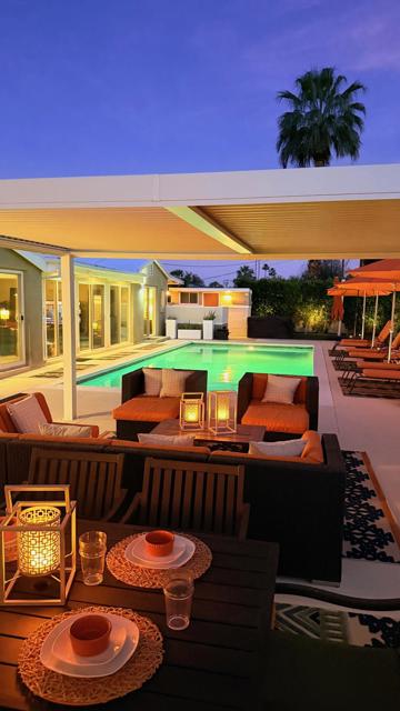 Rare Palm Springs Dual-Residence Estate with Resort Pool & Panoramic Mountain ViewsResort-style desert living on a .38-acre corner lot with two fully separate residences, huge pool, and panoramic mountain views--just blocks from Demuth Park and golf.Two beautifully remodeled, completely separate stand-alone residences sit on a sprawling 16,600 sq ft end-of-block lot, offering 8 bedrooms and 6 bathrooms with exceptional flexibility for a private compound, multi-generational living, or investment opportunity. There is almost triple the square footage of the surrounding neighborhood home lots. Each residence features its own driveway on different streets, providing privacy, convenience, and completely independent access.The elevated lot sits approximately 12 feet above the neighboring homes to the south, creating unobstructed 180 mountain views and a rare sense of privacy and openness. The lot is ''Fee land'', you own the lot. (no land lease) At the center of the property is a huge oversized resort-style pool, perfect for relaxing, entertaining, and enjoying the Palm Springs desert lifestyle.Located just a few blocks from Demuth Park--Palm Springs' largest city park-- offering brand new pickleball courts (under construction), 2 huge dog parks, tennis courts, soccer and baseball fields, playgrounds, and open green space. Several golf courses are also within walking distance. The new ''CV Link'' Coachella Valley bike pathway trail runs right through the park.Additional property highlights include new roofs, owned and paid for solar system, solar-powered driveway gates, and a guest residence yard ready for future amenities such as a pickle-ball court, second pool, or additional outdoor entertainment space.Previously operated as a successful Estate vacation rental generating over $10,000 per month over the past two years it was rented. Furnishings and supplies may be available for a turn-key move-in or vacation rental opportunity.Live in one residence and rent the other, host family and friends in your own private desert compound, or continue its success as an income-producing retreat.Come have look in person soon. Call agent now to schedule a showing.