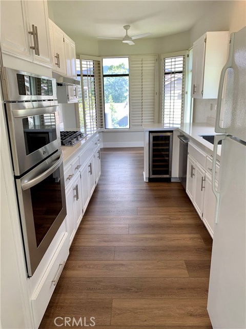 Inside the prestigious gates of Coto de Caza, this beautifully upgraded condo for lease offers a refined blend of comfort and scenic luxury. Perched as a private upstairs end unit, the home showcases sweeping, unobstructed views of the 8th and 9th fairways, creating a serene backdrop for everyday living. Step inside to find luxury vinyl plank flooring and fresh designer paint throughout, complemented by an abundance of natural light. The crisp white kitchen is both stylish and functional, featuring quartz countertops and brand new stainless steel appliances. The spacious primary suite offers a spa-like retreat with dual sinks, quartz counters, designer mirrors, dual closets, and a stunning walk-in shower with marble accents. The secondary bathroom mirrors these elegant finishes and includes a deep soaking tub for ultimate relaxation. Additional highlights include a generous laundry room with washer and dryer, plus ample upper cabinetry for storage. Just steps away, the Fairway Oaks community pool is tucked behind a peaceful oak grove, offering a tranquil escape close to home. Whether you're enjoying a glass of wine from the built-in wine fridge on the private balcony or cozying up by the gas fireplace, this home is designed for both comfort and entertaining. With convenient driveway parking and an enclosed garage, plus access to Coto de Caza Golf & Racquet Club amenities—including golf, tennis, pools, hiking trails, equestrian facilities, and parks—this lease presents an exceptional opportunity to experience the coveted Coto lifestyle.