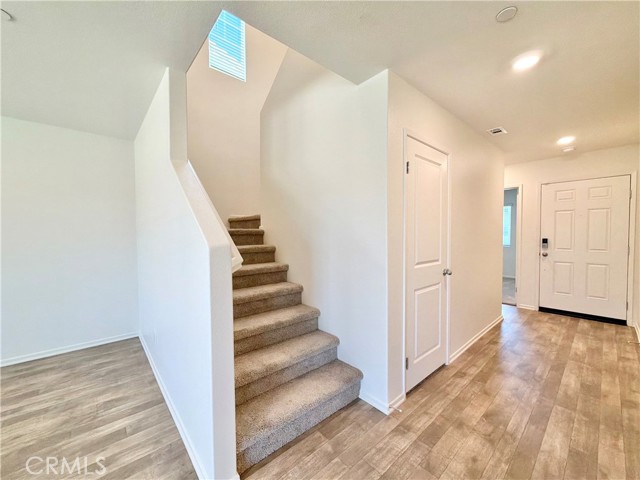 Welcome to the desirable neighborhood of Canterwood! This 4 bedroom, 3 bathroom home offers INCLUDED solar, a spacious backyard with a fire pit, a 2-car garage, and thoughtful UPDATES throughout since being built in 2024. As you arrive, enjoy the low-maintenance landscaping designed for convenience and curb appeal. Inside, you are greeted by a first-floor bedroom and full bathroom—ideal for a home office or guest space. The bedroom features natural light, plush carpet, and ample closet space. The bathroom includes a shower and tub combo, white cabinetry, and upgraded flooring. Moving further into the home, a hallway storage closet adds functionality before opening into the expansive family room and kitchen area. The family room offers an open-concept layout, creating a bright and inviting space complete with LVP flooring and recessed lighting throughout. The kitchen is beautifully appointed with a center island, granite countertops, stainless steel appliances, white soft-close cabinetry, and a walk-in pantry with direct access to the garage. Upstairs, you’ll find the main living quarters. The three additional bedrooms are generously sized with natural light and carpeted flooring, with one secondary bedroom featuring a walk-in closet. The upstairs hallway bathroom mirrors the downstairs finishes with a shower and tub combo and modern design. Nearby, the laundry room includes a washer and dryer for added convenience. The primary suite is spacious and well-designed, featuring recessed lighting and abundant natural light. The en-suite bathroom includes a large walk-in shower, dual sinks, elegant flooring, and an oversized walk-in closet. The backyard is an entertainer’s dream, showcasing an expansive covered patio with recessed lighting, two ceiling fans, and a built-in fire pit—perfect for gatherings. The generously sized yard also features low-maintenance landscaping for easy upkeep. Located in proximity to shopping, dining, freeways, and more!!! Schedule your private showing today before it is too late!