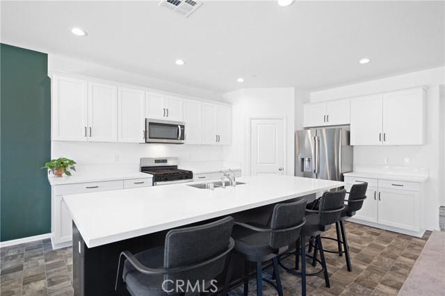 Welcome To This Beautifully Designed New Construction Home Located In The Desirable Pathway At Cimarron Ridge Community In Menifee. Built In 2025, This Spacious Two Story Residence Offers Approximately 2,824 Square Feet Of Living Space With Five Bedrooms And Three Full Bathrooms, Providing A Flexible And Functional Layout Ideal For Modern Living. Step Inside To A Light And Bright Open Concept Floor Plan Featuring Nine Foot Ceilings, Vinyl Flooring In Main Living Areas, And Plush Carpet In Bedrooms. The Expansive Great Room Flows Seamlessly Into The Gourmet Kitchen, Creating The Perfect Space For Both Everyday Living And Entertaining. The Kitchen Showcases White Shaker Cabinetry With Adjustable Shelving, Granite Slab Countertops With Full Backsplash, Stainless Steel Appliances Including A Four Burner Gas Range With Microwave Hood, Dishwasher, And Spacious Pantry Storage. A Downstairs Bedroom And Full Bathroom Offer Convenience For Guests Or Multi Generational Living. Upstairs, The Private Primary Suite Features A Spacious Layout With Dual Sinks, Elegant Countertops, Separate Tub And Shower, And A Large Walk In Closet. Additional Bedrooms Are Generously Sized With Easy Access To Well Appointed Bathrooms. A Flexible Upper Level Layout Provides Opportunity For A Loft Or Additional Living Space Depending On The Floor Plan. This Energy Efficient Home Includes Dual Glazed Windows, High Performance Insulation, Tankless Style Water Heating, Central HVAC System, LED Lighting Throughout, And Smart Home Features Including A Video Doorbell, WiFi Programmable Thermostat, And USB Charging Outlets. Additional Highlights Include A Fire Sprinkler System, Smoke And Carbon Monoxide Detectors, And Pre Wiring For Future Technology Needs. The Exterior Offers Durable Stucco Construction, Concrete Tile Roofing, Professionally Designed Drought Tolerant Landscaping, And A Two Car Attached Garage With Automatic Opener. The Spacious Backyard Provides A Blank Canvas For Outdoor Living, Entertaining, Or Future Customization. Ideally Located Near Shopping, Dining, And Easy Freeway Access, This Home Offers The Perfect Combination Of Modern Design, Energy Efficiency, And Everyday Comfort In One Of Menifeeās Growing New Communities.