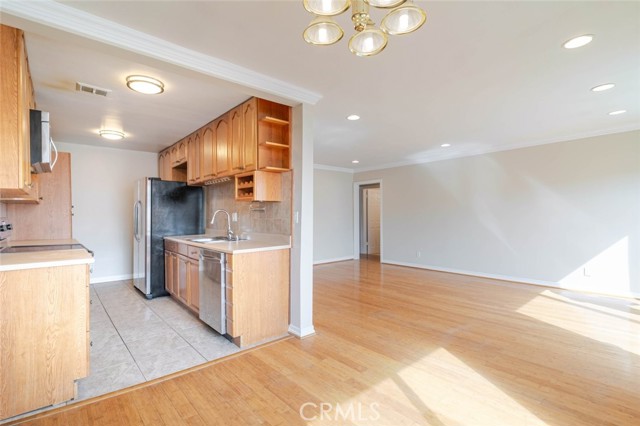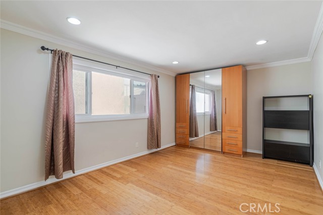 Great 2 bedroom, 2 bathroom lease opportunity in an ideal Hollywood location right on the West Hollywood border. This condo offers a spacious 1145 square foot floor plan featuring a great room with glossy floors, recessed lighting, crown moldings, and sliding doors that lead to a private balcony. A dining area with a hanging light fixture sits conveniently next to the long galley kitchen, which provides ample cabinet space, generous countertops, and a large refrigerator. Both bedrooms are well sized with large windows that bring in natural light. The primary bedroom offers a spacious layout with a private bathroom featuring dual vanities, a large shower, and closet space. Additional highlights include newly installed dual heating and air conditioning units for added comfort. The property includes gated garage access with tandem parking for two vehicles. The complex features well maintained landscaping and is ideally located between Sunset Boulevard and Santa Monica Boulevard, close to popular cafes, restaurants, and shopping, with convenient access to the 101 freeway.