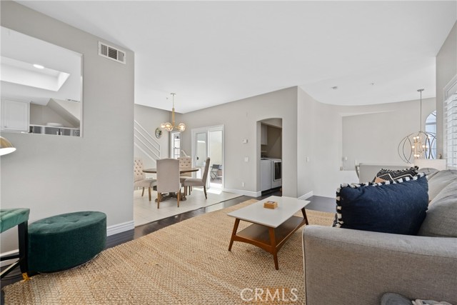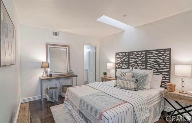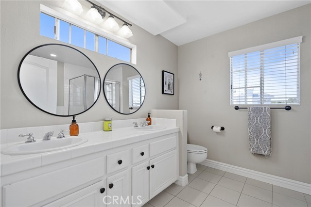 PRICED TO SELL NOW, just in time for the summer! Nestled in the highly sought-after Cathedral Pointe community, this beautifully updated two-bedroom home features dual master suites—perfect for a teenager, extended family member, or roommate. Located on a quiet interior lot within a private gated enclave of just 25 homes, it offers a detached feel with a private garage, top-rated Huntington Beach schools, and close proximity to the beach. The pleasant curb appeal of this French-style home, from the front porch to the arched brickwork and classic symmetry, is always inviting. Entering the residence, this popular floor plan offers a dual master bedroom on the entry level with a full bath. As you make your way up to the second level, there is a nicely sized living room with a gas fireplace and a herringbone marble façade, a ½ bathroom, laundry closet with 220V hookups, dining space, and a mix of hardwood and tile flooring throughout the main living areas.The efficient layout flows into a well-appointed kitchen with white cabinets, quartz countertops and subway tile backsplash, recessed lighting, and stainless steel appliances. Just off the kitchen, sliding doors lead to a nicely sized patio, perfect for morning coffee, intimate gatherings, or weekend BBQs. Heading upstairs, the second primary suite features high ceilings, 2 closets with mirrored closet doors, an en-suite full bathroom with dual sinks, a step-in shower with separate soaking tub, and access to the top-level balcony. Perfect for taking in daily sunsets, watching the famous Huntington Beach Air Show and the night skies! Additional highlights include neutral colored paint throughout, updated finishes, scraped ceilings, and central heating. Enjoy the amenities Cathedral Pointe has to offer including a newer community pool and spa! Close by, Helme Park and playground offer space for walking, playing with kids and pets, or simply enjoying the outdoors. This interior tract home is also close to award-winning schools, a short commute to world-class beaches, and the fine dining, entertainment, and shops at Main St, Pacific City, Bella Terra, Costco, Trader Joes and Whole Foods. Also nearby are HB Central Park, the Library and Senior Center, HB Sports Complex, the Equestrian Center, Meadowlark Golf Course, South Coast Plaza, the OC Fair Grounds, and much more! Easy access to major freeways and PCH. Experience the best of California coastal living all year round!