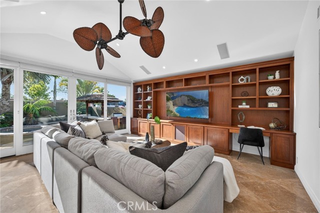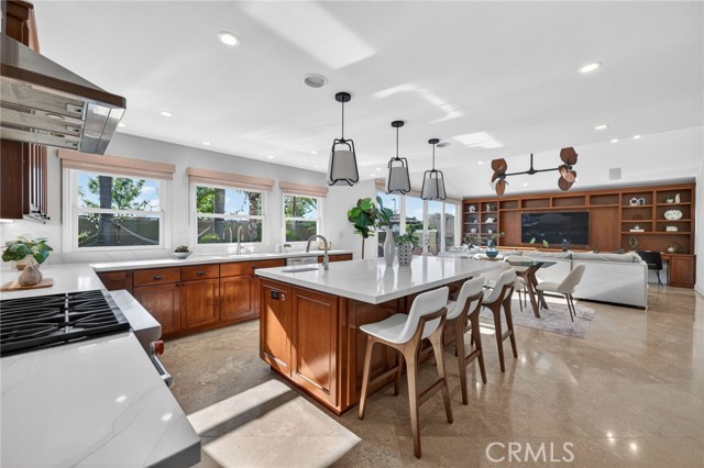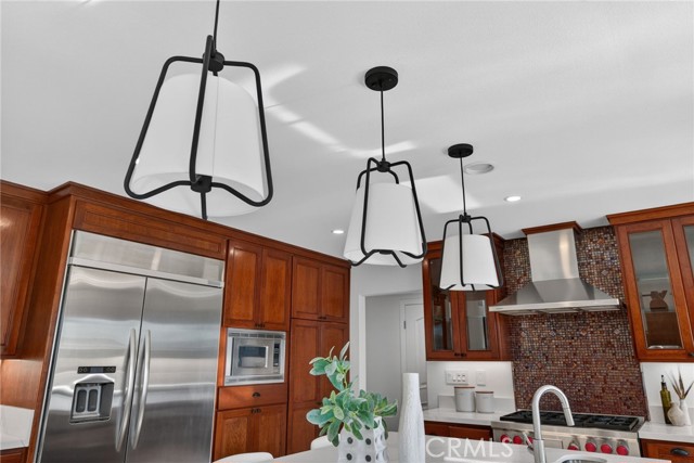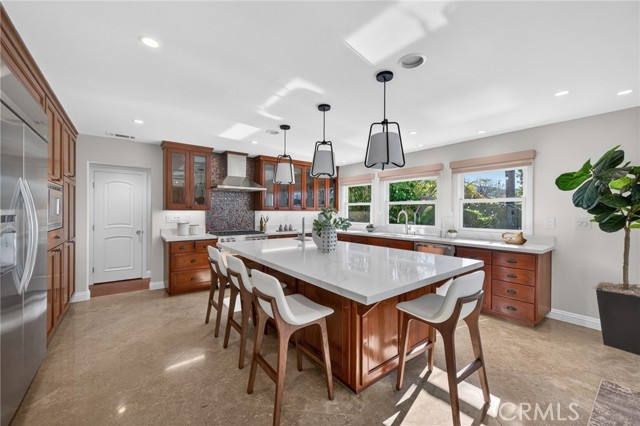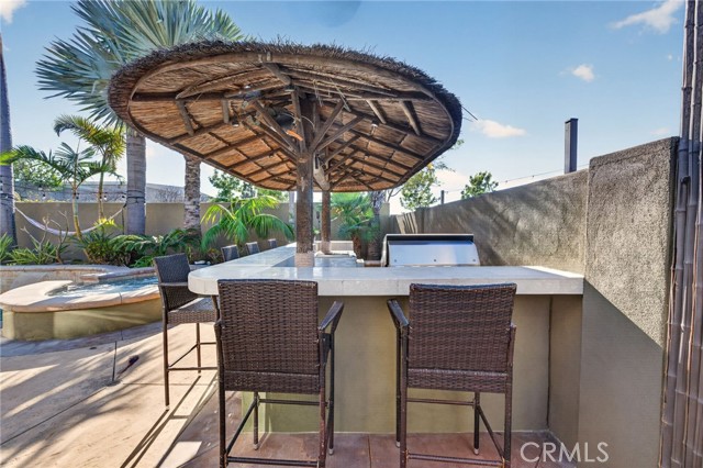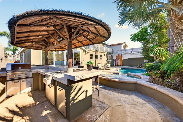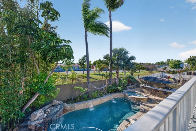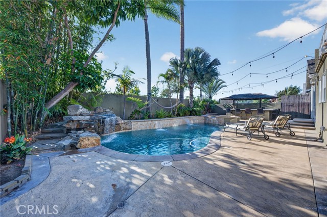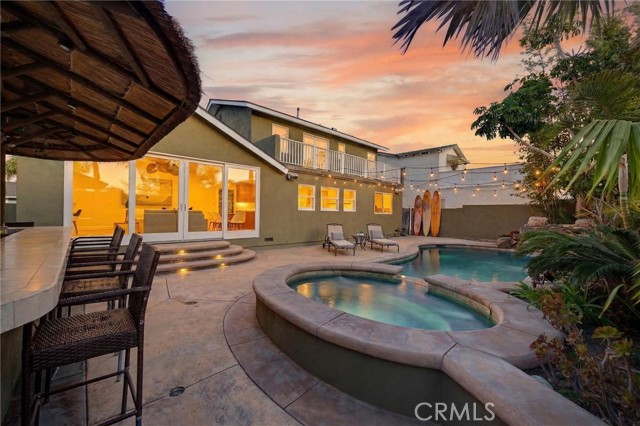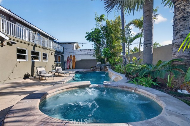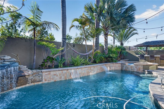 Located in the highly sought-after Cal Classic neighborhood, this stunning coastal residence offers exceptional curb appeal and embodies the best of Southern California coastal living. With a large double driveway, manicured front yard, and mature palm trees, the home makes an immediate impression. Beautifully updated and truly turnkey, this is a gorgeous entertainer’s home designed for both comfort and style. Inside, you’ll find fresh interior and exterior paint, hardwood flooring, and a thoughtfully designed layout featuring 3 spacious bedrooms and 2.5 bathrooms, along with air conditioning. The chef’s kitchen showcases new quartz countertops, a large center island with bar seating, prep sink, ice maker, and beverage refrigerator. Appliances include a six-burner Wolf range, built-in refrigerator, microwave, and dishwasher, plus a pantry with pull-out drawers. The family room features vaulted ceilings and opens through expansive sliders to the backyard, creating seamless indoor-outdoor living. It includes a built-in entertainment center with custom shelving, a brand-new QLED TV, and a custom multi-head ceiling fan. Additional highlights include a formal living room with a gas fireplace and an elegant staircase with iron railing. The primary suite offers built-in shelving, a beverage refrigerator, and a spa-inspired bath with soaking tub, walk-in shower, and a large walk-in closet with custom organizers. French doors lead to a private deck overlooking the backyard. Two additional bedrooms include custom closet systems, and the secondary bath features custom tile and a tub. The backyard is a true oasis with a pool, spa, waterfall, grotto, outdoor lighting, built-in BBQ and bar, plus an outdoor shower and bathroom. The 2-car garage features new epoxy flooring, a 220-volt outlet for EV charging, and pull-down attic storage. A separate laundry room adds convenience. This is a rare opportunity to own a move-in ready coastal home in one of the area’s most desirable neighborhoods.