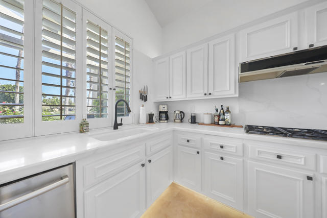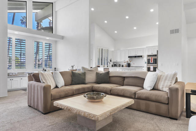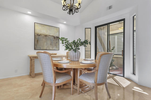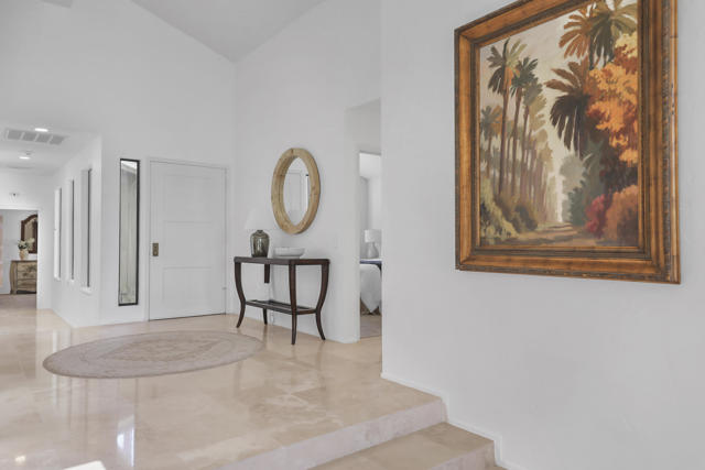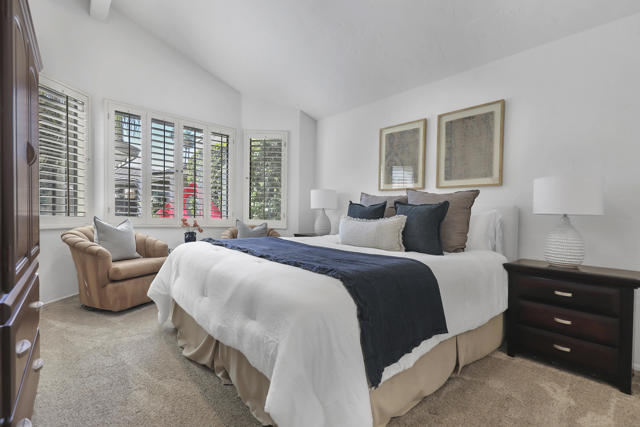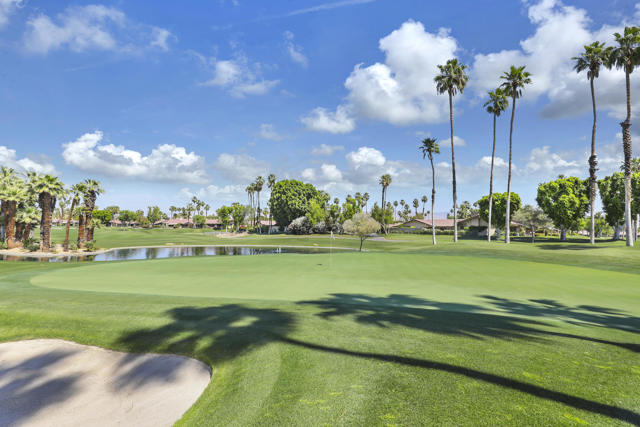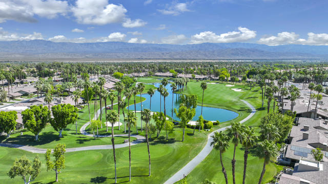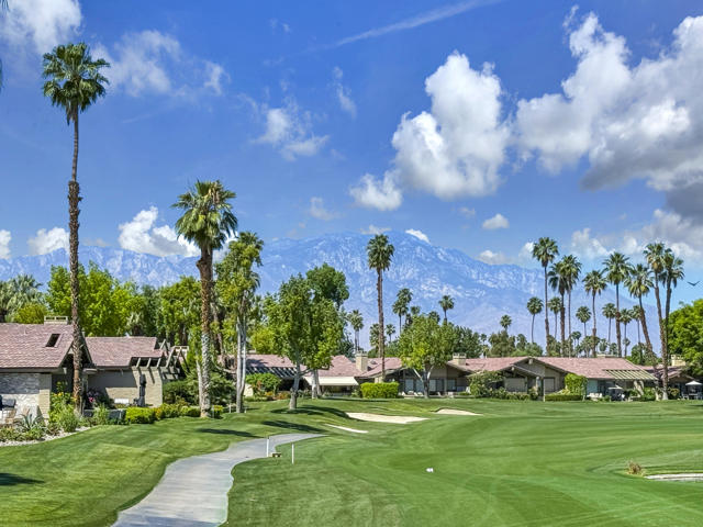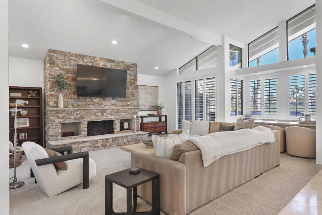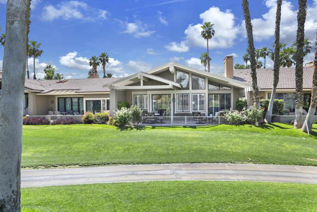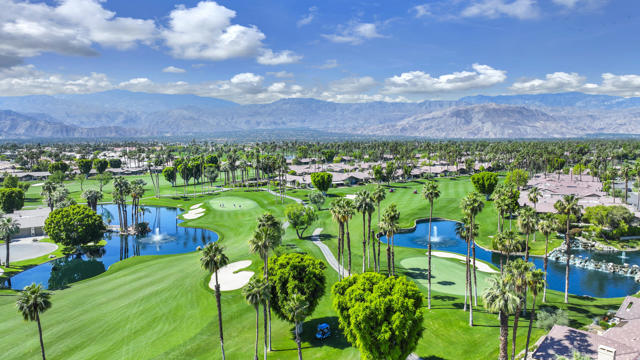 This Taos floorplan is one of the most desirable layouts in The Lakes Country Club! Located on a quiet interior street with minimal exterior noise. Offering approximately 2,800 square feet, this thoughtfully designed home features two spacious bedrooms plus a versatile den that easily functions as a third bedroom, along with four beautifully updated bathrooms. All sleeping areas are thoughtfully separated for an abundance of privacy.Designed with light and openness in mind, the home showcases an expanded great room created by removing walls for seamless flow between living spaces. A custom fireplace of stacked stone is artistry at its best. The kitchen has been tastefully upgraded with new cabinetry and elegant white and gray quartz countertops, creating a clean, modern aesthetic. Polished flooring runs throughout the main living areas, while plush carpeting adds comfort to the bedrooms. Newer appliances make this home move-in ready.Natural light pours in through walls of glass and high windows, all enhanced by plantation shutters, framing breathtaking views of the lake and golf course beyond. The extended patio is perfectly positioned to capture these stunning vistas and offers ample space for outdoor living and entertaining--ideal for enjoying the serene desert evenings.This is a rare opportunity to own a light-filled, beautifully updated home in one of the community's most sought-after locations.
