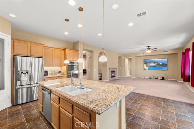 Spacious 4-bedroom, 3-bath home on a desirable corner lot that comes with a $20,000 credit towards buyer's closing costs! This single story home with a large loft space is located in the gated community of Tournament Hills in Beaumont. This home lives primarily as a single story, featuring 4 bedrooms, 3 bathrooms, an office/den, kitchen, dining area, and an inside laundry room all on the main level. Upstairs, you’ll find an expansive approximately 700 sq ft loft complete with two French doors that open to a private patio deck. A striking two-sided fireplace creates a warm and inviting connection between the living room and family room. The kitchen is designed for both function and style, offering plenty of granite countertop space, a large center island, and a walk-in pantry. The formal dining room and the office/den are separate and could be converted to two additional bedrooms. Additional highlights include a 2-car attached garage with direct access, plus a separate one-car garage with entry to a private courtyard—perfect for added flexibility and curb appeal. Enjoy the best of comfort, space, and perhaps even a day of golf with the Morongo Golf Club a quick golf cart ride away.