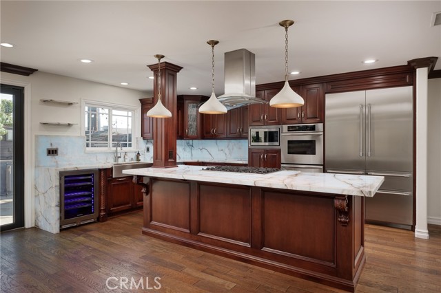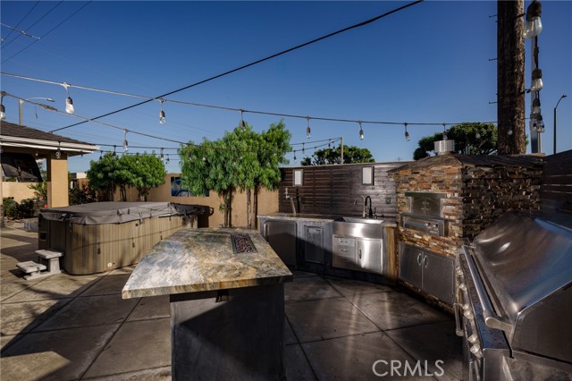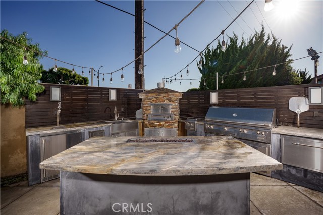 3 Bedrooms, 2 Baths, Complete remodel inside, Thermador appliances, Wine Cooler, Translucent Onyx counter tops and waterfall with circuit board multicolor lighting, Wood floors, Solar System, Air conditioning. Back yard with a very nice Spa and TV, 58" built in natural gas BBQ Alfresco brand with sear zone, built in natural gas side burners, Built in natural gas pizza oven, Full functioning sink, Warming Drawers, Refrigerator and refrigerant drawers, Natural stone island and fire feature, Full overhead exterior open room with roof, Bromic heaters, fan and speakers system, Added independent fire feature, Waterfall pond, Landscape lighting.