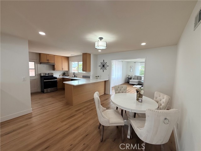 Experience coastal living at its finest in this meticulously upgraded single-story home, perfectly situated on a quiet cul-de-sac in Huntington Beach’s premier tract. This 3-bedroom, 2-bath residence features a versatile bonus family room—ideal for a 4th bedroom transition—and is just steps from top-rated schools and local parks.The interior is bathed in natural light, showcasing an open-concept layout with luxury vinyl flooring, recessed lighting, and freshly pained inside and out. The gourmet kitchen is a chef's delight, boasting granite countertops, spacious kitchen peninsula for extra space and sittings, soft-close cabinetry, and premium stainless steel appliances. Both bathrooms have been fully transformed with modern vanities, designer tile, and stylish doors and fixtures. The master bedroom was enlarged to provide more living space and extra closet storage. Designed for entertaining, the living areas flow seamlessly through dual-pane sliders and patio door to a private backyard oasis, complete with a built-in jacuzzi. Practical highlights include a spacious 2-car garage and an extra-large driveway. Located just minutes from the beach, Huntington Harbour, and Bella Terra’s premier dining and shopping, this turnkey home offers the perfect blend of style and convenience.