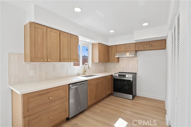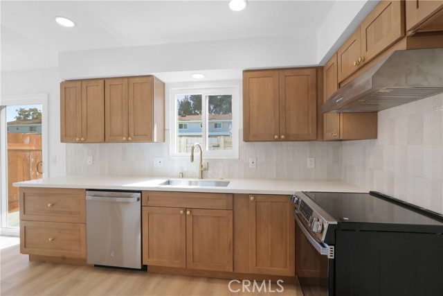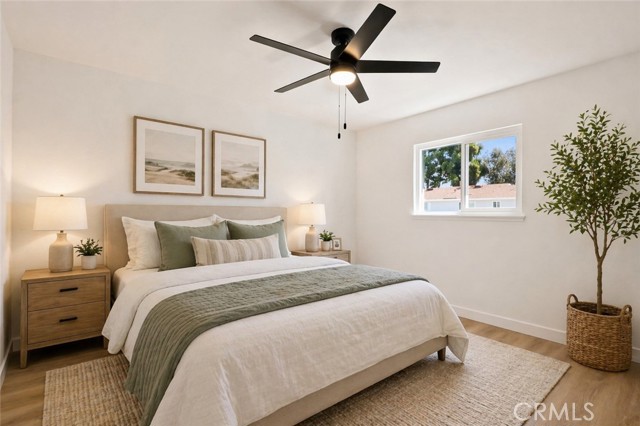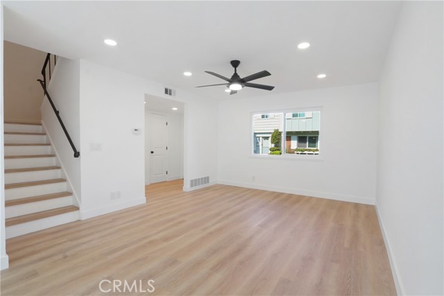 Welcome to this beautifully remodeled two-story townhome in the sought-after Village Town Homes community in South Huntington Beach. This 4-bedroom, 1.5-bath home offers 1,254 sq. ft. of thoughtfully updated living space with new luxury vinyl flooring throughout, dual pane windows and slider, fresh interior paint, and smooth ceilings. The fully remodeled kitchen features new cabinetry, quartz countertops, a custom backsplash, and brand-new appliances. Interior laundry adds everyday convenience. Upstairs, all four bedrooms include ceiling fans, along with a stylishly renovated full bath showcasing a new vanity, quartz countertop, tile flooring, and a custom-tiled shower/tub combination. Enjoy the private back patio, perfect for relaxing or entertaining. The home includes an assigned carport (#96) with a private storage cabinet. Community amenities include a pool, spa, clubhouse, sports courts, playground, and expansive greenbelts. Ideally located near top-rated Huntington Beach schools, shopping, and dining, and just a short distance to the beach. Enjoy the best of Surf City living.