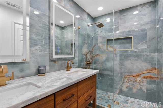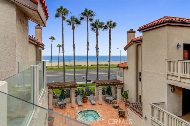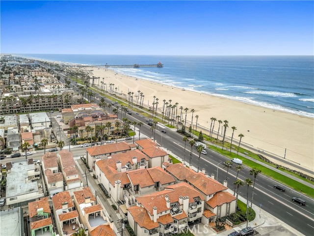 Oceanfront condo just steps from the sand and a short stroll to Main Street and Pacific City. Take in sweeping views of Catalina Island and unforgettable sunsets from your private retreat. Step out onto your expansive deck and check the surf in real time—your own front-row seat to the coastline. This turnkey, single-level top-floor residence offers elevator access, soaring vaulted ceilings, and a bright, breezy ambiance that captures the essence of coastal living. Thoughtfully designed for comfort and ease, the home features added recessed can lighting, enhancing the warm and inviting retreat-like atmosphere throughout. As you enter, you’re welcomed by a beautifully remodeled kitchen designed with both style and function in mind—featuring quartz countertops, stainless steel appliances, custom cabinetry, and elegant pendant lighting. The open-concept layout flows effortlessly into the casual dining area and spacious living room, creating an ideal setting for entertaining or simply relaxing while enjoying ocean views. The oversized deck, enhanced with glass panels, offers the perfect space for alfresco dining or unwinding with a morning coffee or evening glass of wine, all while taking in the ocean breeze and vibrant sunsets. This thoughtfully designed two-bedroom layout includes a guest bath with direct access to the secondary bedroom, along with a generously sized primary suite featuring dual closets. The primary bathroom has been fully transformed into a spa-like retreat, complete with a walk-in shower, refined finishes, and a serene coastal aesthetic. Residents of the Ocean Breeze community enjoy resort-style amenities including an ocean-facing pool and spa, on-site gym, secure bicycle storage, and two assigned parking spaces. Located in the heart of Surf City USA, Huntington Beach offers an unmatched coastal lifestyle with world-class surfing, scenic beach paths, vibrant downtown shops and dining, and year-round events like the U.S. Open of Surfing and the Pacific Airshow. A rare opportunity to own a premier oceanfront property—perfect as a full-time residence or a weekend escape where every day feels like a vacation. Welcome home.