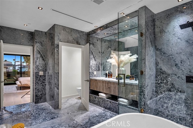 A rare statement of modern coastal luxury, this brand-new beach estate is ideally positioned just moments from the sand in the heart of Downtown Huntington Beach. Spanning approximately 2,857 square feet, this architecturally stunning residence showcases three sumptuous en-suite bedrooms, a spacious family lounge, and an extraordinary third-floor luxury suite with an expansive private deck designed for elevated entertaining. The main living space is both dramatic and inviting, with wide La Cantina doors, exquisite porcelain flooring, and custom designer finishes that capture the essence of refined seaside living. The chef’s kitchen is nothing short of spectacular, featuring a grand island with Calcutta Turquoise countertops, an Onyx Velluto backsplash, and top-tier appliances. The primary suite offers a serene retreat with a private balcony, spa-inspired bath, and custom walk-in closet. Complete with a finished two-car garage, epoxy floors, and dual rooftop decks with stunning views, this exceptional residence delivers a lifestyle of prestige, sophistication, and effortless luxury near the coast.