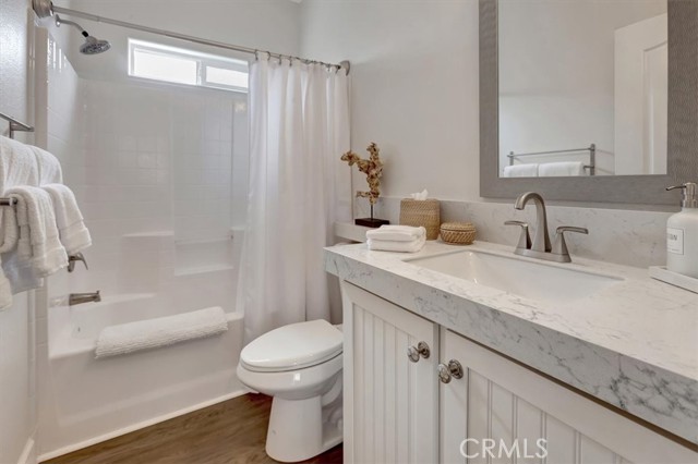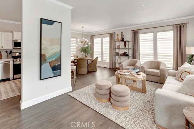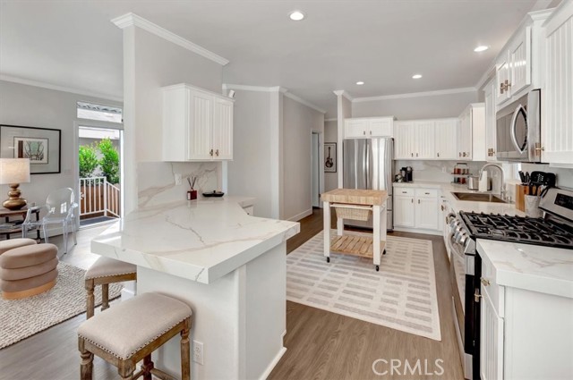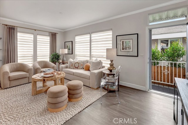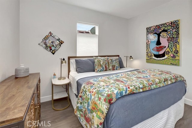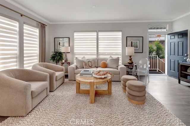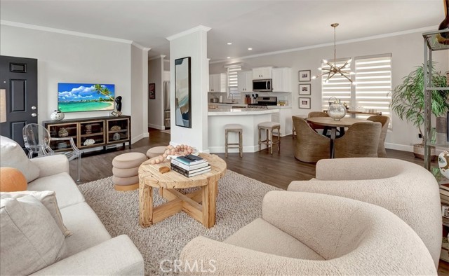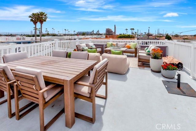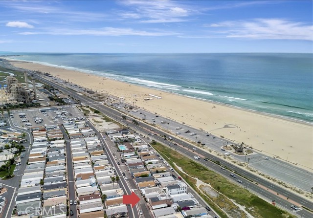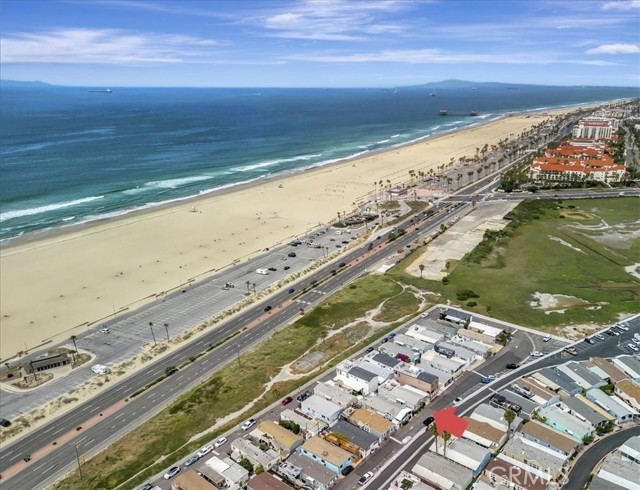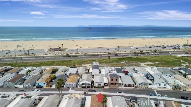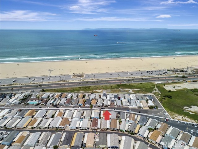 OCEAN AND CATALINA ISLAND VIEWS from this very affordable three bedroom home across the street from the beach! This turnkey home with designer finishes is located in Cabrillo Beachfront Village and offers a perfect location with the beach and downtown Huntingon Beach just a stroll away. A large great room welcomes you as you enter into the light and bright spacious living area with high ceilings, numerous windows, an open spacious kitchen with stainless appliances, quartz countertops & custom cabinets. The living area offers space for relaxing and dining. Down the hall is the generous sized primary suite bedroom with walk in closet with custom built-ins, and updated bathroom. There are two additional bedrooms and a second full bathroom that has been updated. Also a separate laundry room. Upgrades include luxury vinyl plank flooring, custom shades and draperies & designer light fixtures plus new paint inside and out. Step outside and walk up the stairway to a large rooftop deck with 360 views including expansive coastline beaches, mountains, Catalina Island and Huntington Beach. Relax and enjoy a picture perfect sunset. Additionally there is an oversized 2 car carport plus a parking space in front of the house, barbeque space and a lawn space that is perfect for a dog run area. Plus a large storage shed. There are community amenities including a swimming pool, clubhouse for entertaining or social activities, a ping pong room plus a gym! And nearby one can hike the nature preserves or walk to the great shops and restaurants of downtown Huntington Beach. Property is on leased land at $3430 which includes water, trash and community amenities. Come live the famous California beach lifestyle at a fraction of the cost of nearby neighborhoods!