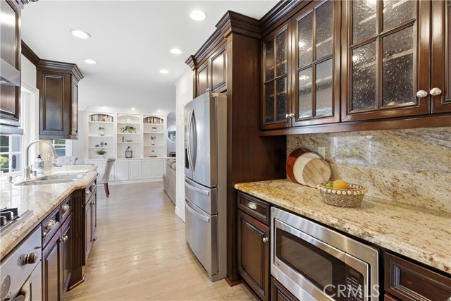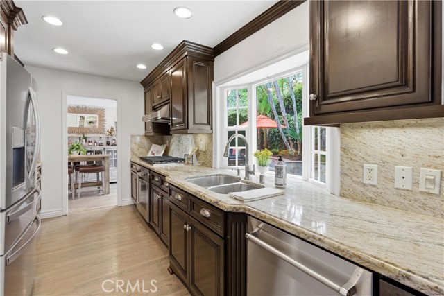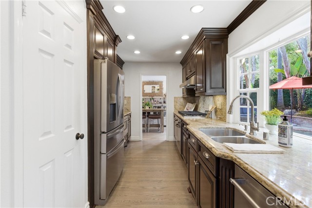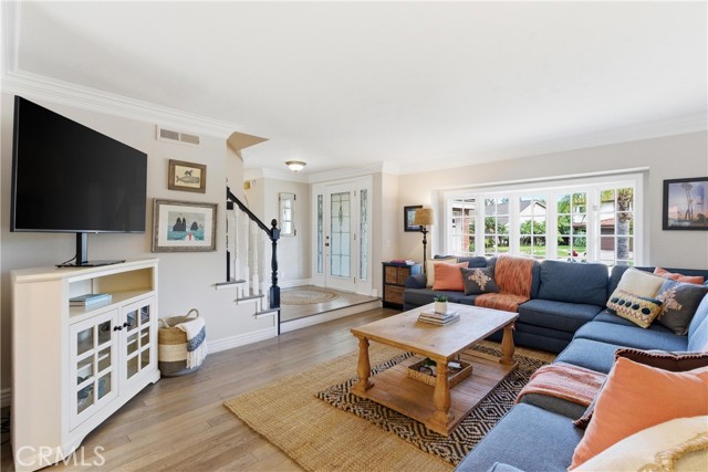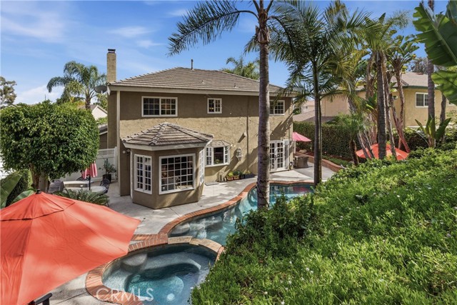 Welcome to the dream home in South Huntington Beach you have been looking for! 8421 Crimson is a stunning South Huntington Beach home, primely located on a cut-de-sac, in one of those great pride of ownership neighborhoods that everyone dreams about living in. This immaculate 2 story home features over 2,400 square feet of living space spread out over an extremely well thought out floorpan that is the perfect blend of design and functionality. The home features 4 large bedrooms, including one primary suite, and 3 gorgeously upgraded bathrooms. One of the best parts of this dream home is the great downstairs that features 2 spacious living rooms, one complete with a fireplace and bar area, a beautifully remodeled galley style kitchen with an abundance of gorgeous cabinetry and granite countertops with all the space you could ever ask for when it comes to dining, entertainment, day-to-day life, and storing all of your items. The dining room features lovely built in cabinetry and shelving, as well as a wall of windows that bring in a tremendous amount of natural light, and the interior laundry room is conveniently in the home right next to the entrance to the spacious attached 2 car garage. As if that isn't enough, he gorgeous flooring, paint, moldings, trim, moldings, and paint, along with the recessed lighting, ceiling fans, attic storage, and the abundance of windows really make this home the complete package. The exterior of this home is just as amazing as the interior. Tucked away on an oversized 7,200 square foot interior lot that is on a cut-de-sac, with a big hillside behind it, is like a private oasis. The front of the home features a large driveway accented by gorgeous brickwork and hardscaping, as well as lush mature landscaping and a nice lawn. The backyard of this home is a dream space highlighted by the sparkling pool, jacuzzi, and water features, as well as the built in barbecue/bar area, great hardscaping with plenty of room for your patio furniture and goodies, as well as spacious side yards on both sides of the home. One of the best parts of this home is the feeling of privacy that is created by the way the home and yard is nestled in front of a gorgeous hillside that is part of the property. The views from there are amazing, and it is the perfect spot to sit and take in the view, have some peaceful quiet time, and enjoy the 4th of July fireworks. Don't miss the opportunity to call this dream home yours!