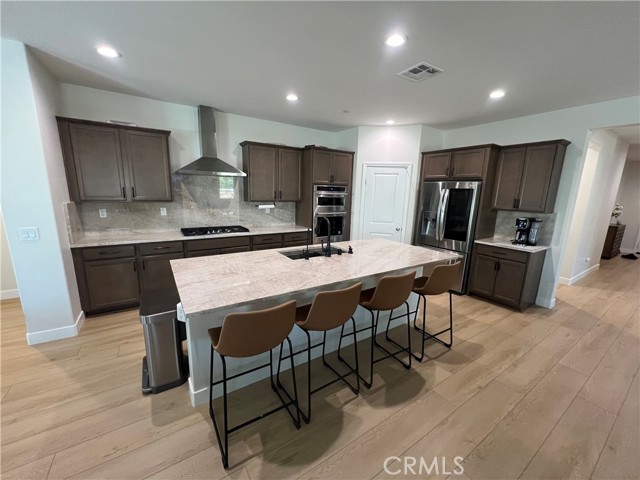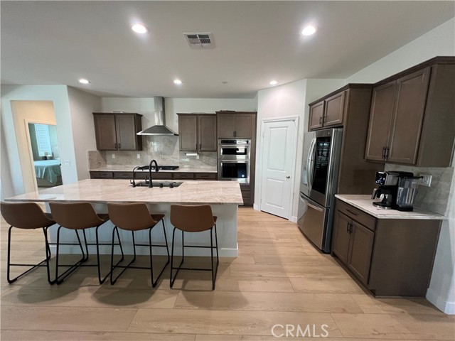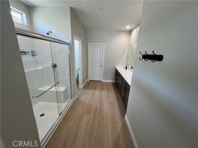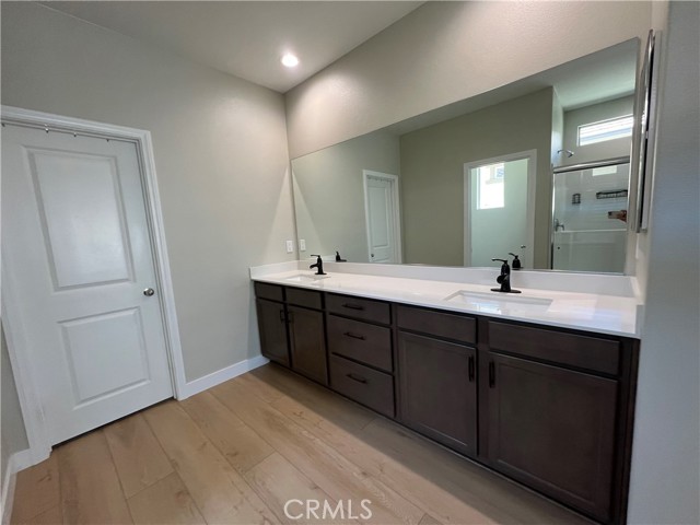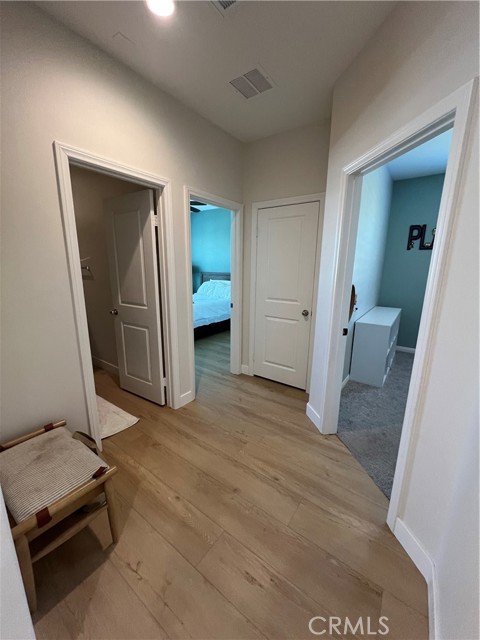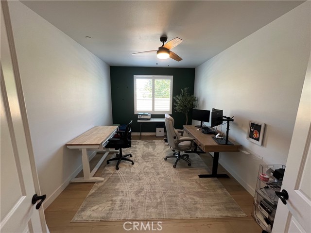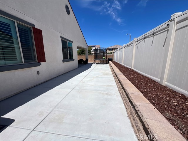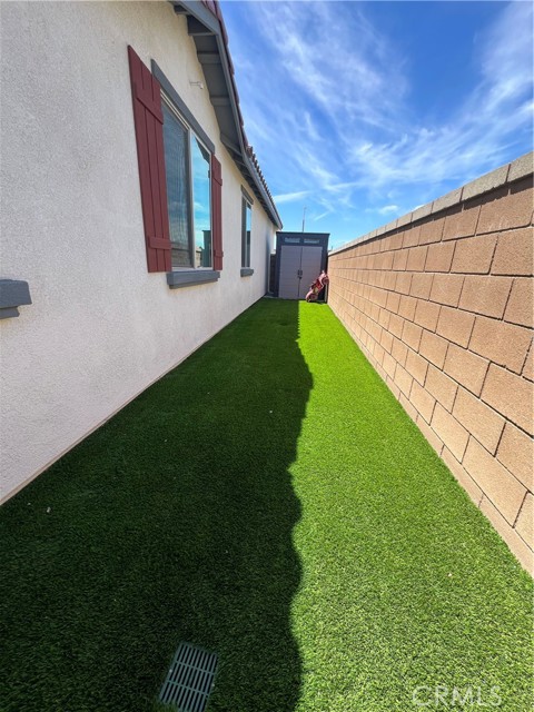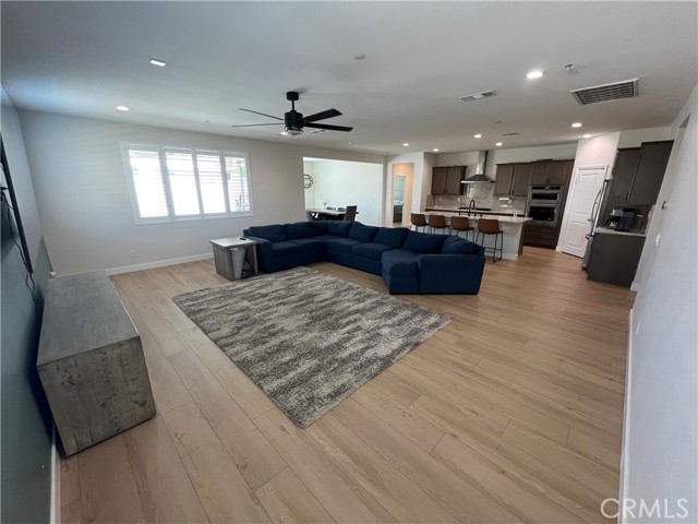 Beautiful single-story home for lease in a newer Menifee neighborhood, ideally located near Menifee Lakes Golf Course. Situated on a desirable corner lot within a quiet cul-de-sac, this property offers excellent curb appeal with low-maintenance landscaping, including artificial turf, decorative concrete, and drip-irrigated planters. A charming paver walkway leads to the inviting front entrance. Inside, the home features 9-foot ceilings, creating a spacious and open feel. Upon entry, two guest bedrooms and a full bathroom are conveniently located to the left. Further down the hallway, an additional en-suite bedroom offers its own private bathroom—perfect for guests or multigenerational living. A dedicated office with double doors provides a functional workspace, along with a nearby powder room for added convenience. The rear of the home opens to a bright and expansive great room with an open-concept layout, ideal for everyday living and entertaining. The oversized kitchen is equipped with a large center island, stainless steel appliances, ample cabinetry, and upgraded wood flooring that flows throughout the home. Plantation shutters enhance both style and privacy in every room. The primary suite offers a relaxing retreat with a double vanity, walk-in shower, and an oversized walk-in closet. Step outside to enjoy a private backyard designed for entertaining, featuring a covered patio, extensive concrete hardscaping, and artificial turf for easy upkeep. Additional highlights include a solar system for energy efficiency, proximity to multiple parks, and convenient access to the 215 freeway via Newport Road. Located near shopping, dining, and within a family-friendly community, this home combines comfort, functionality, and a prime Menifee location.
