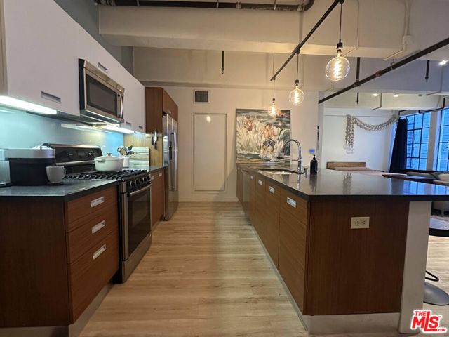 Spacious Live/Work LOFT at the Cornell building located at Santee Court in the Fashion District. This upgraded unit has high ceilings, concrete floors, a modern kitchen with stainless steel appliances and large counter, tons of storage, and washer & dryer in unit. The Cornell building in Santee Village features many amenities, including rooftop Pool & spas, a rooftop Golf driving range, a rooftop Basketball Court, a rooftop lounge area with BBQ, a fitness center, and retail on the bottom floor. One parking space is included.