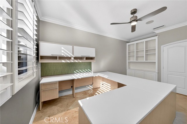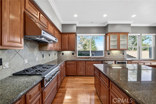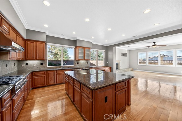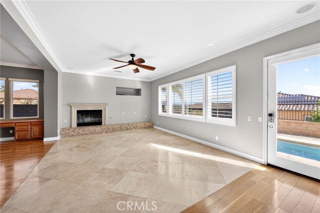 Welcome to 7837 Lady Banks Loop — an exceptional single-story residence located in the highly sought-after luxury living in this stunning 4-bedroom + 1-office bedroom and 4-bathroom home. community known as The Retreat. Upgrades include: distressed hard wood flooring, upgraded baseboards, crown molding, custom paint, 10' high ceilings with speakers and wood shutters. The gourmet kitchen includes custom cabinetry with an oversized granite island and counters, built-in stainless steel refrigerator, double ovens, range, microwave and dishwasher and built in desk/computer area. Stay cool with 2 A/C units and 3 fan whole house system. The large open family room has a gas fireplace, ceiling fan and built in custom shelving. This beautifully maintained home is a rare single-story floor plan, highly desired yet rarely available in this community. The bright, open layout features spacious living areas, abundant natural light, and seamless indoor–outdoor flow perfect for entertaining or quiet relaxation. This upscale neighborhood is Corona’s only 24-hour guard-gated community, offering unmatched privacy, security, and resort-style amenities. Conveniently located near top-rated schools, Dos Lagos shopping, fine dining, and outdoor recreation, with easy access to Los Angeles, Palm Springs, and Temecula’s Wine Country. This is an incredible opportunity to live in one of Corona’s most exclusive gated communities and in one of its rare single-story homes.