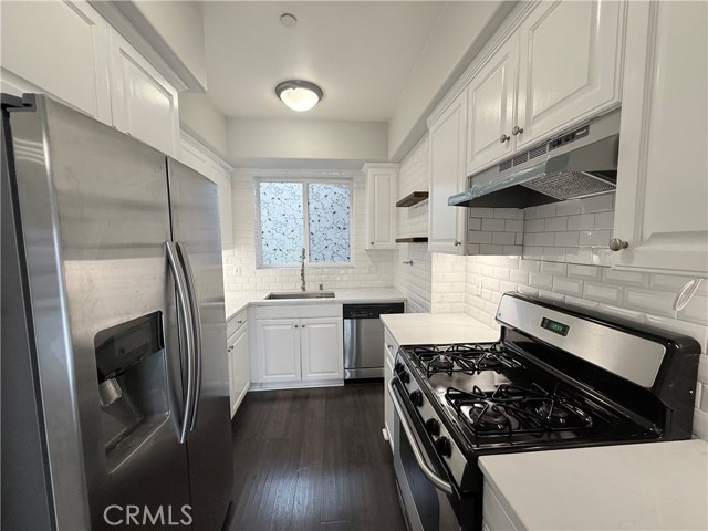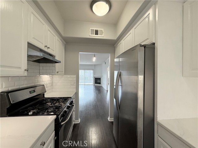 Step into this beautifully designed 2-bedroom, 2-bathroom condo in the sought-after Bentley Rose community. Featuring an open floor plan, the living and dining areas flow seamlessly into an upgraded kitchen, complete with quartz countertops, white cabinetry, and stainless steel appliances. The primary bedroom boasts an en-suite bathroom, two spacious closets, a rarely used queen-size Murphy bed, and large west-facing windows that flood the space with natural light. The second bedroom offers additional versatility as a home office or guest room. This home is further elevated by durable laminate flooring with a hardwood-like finish, a decorative living room fireplace, and a private balcony offering a peaceful retreat. Enjoy the convenience of in-unit laundry, central air/heat, and secure tandem parking. The building features a rooftop terrace with a BBQ area and breathtaking views of Downtown Los Angeles and Century City. Located within walking distance to Trader Joe’s, CVS, and just minutes from the 405 freeway entry, this condo combines modern living with unbeatable convenience in a prime location.