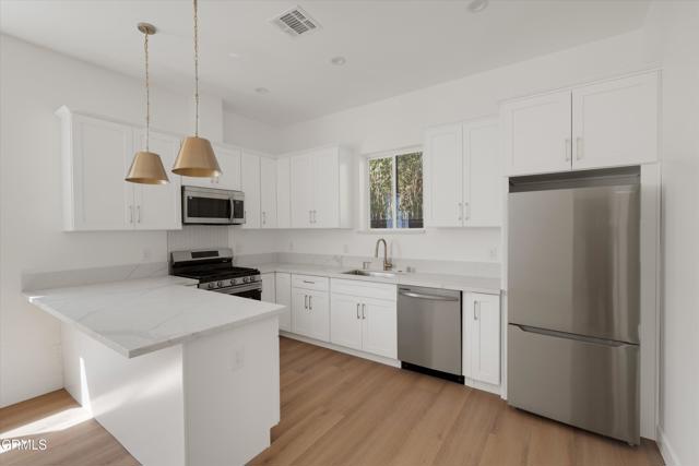 Be the first to live in this beautifully constructed 2-bedroom, 2-bathroom ADU located in Granada Hills. This brand-new unit features high ceilings, quality finishes and laminate wood flooring throughout. The kitchen is fully equipped with a suite of Samsung stainless steel appliances, quartz counters, abundant cabinet space and a peninsula with bar seating. Both bedrooms provide generous closet space, while the primary suite includes a private ensuite bath with a spacious walk-in shower. Additional highlights include in-unit laundry, central AC, ample street parking and a quiet, residential setting that offers both privacy and convenience. Don't miss the opportunity to enjoy a newly built home with all the modern amenities!