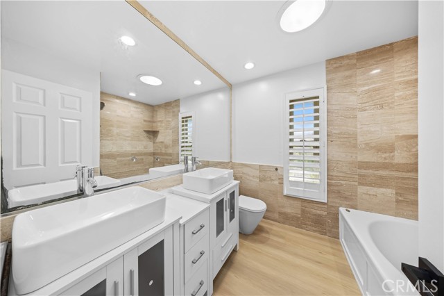 Photos include staging furnishings for illustrative purposes only. Unit is unfurnished. Available immediately. Experience resort-style living in Irvine's iconic Woodbridge community! This expansive home offers approximately 3,000 sq ft with 4 spacious bedrooms upstairs and a versatile downstairs bonus room — perfect as a home office, study, or guest space — plus 3 fully remodeled baths. Enjoy a brand-new gourmet kitchen featuring granite counters and bay windows, beautifully updated bathrooms with stylish modern lighting, and new flooring throughout. Vaulted ceilings and skylights fill the home with natural light. Spacious family room, dual pantries, and a gated private courtyard add to the comfort and functionality. Relax or entertain in the private backyard patio. Attached 2-car garage included. Woodbridge residents enjoy 2 lakes with beach clubs, 24 pools, 16 spas, 24 tennis & pickleball courts, parks, and scenic trails. Walking distance to award-winning IUSD schools — W.R. Nelson Elementary, South Lake Middle, and Woodbridge High School. No pets. No smoking. Tenant responsible for all utilities.