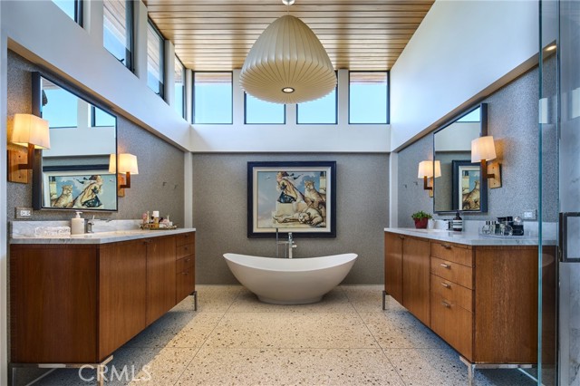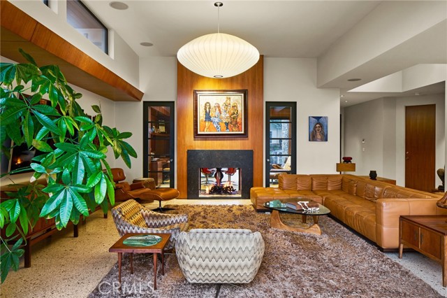 An exceptional representation of refined architecture, design integrity, and thoughtful accommodations developed to suit even the most discerning resident. Formally awarded the recognition of Best Architectural Design in Orange County, the residence was imagined and expanded by Louis Dennis and Jeff Dahl. With Frank Lloyd Wright and Mid-Century-inspired construction practices and design sensibilities, along with the direction of a Feng Shui Master, the creators crafted a one-of-a-kind collection of spaces with an enduring aesthetic; a meticulously sourced assemblage of resilient and rare elements; and a balanced, harmonious environment. The configuration of the entire 10,000 square-foot property, a fluid continuum of well-scaled spaces, is emblematic of the quintessential modern domain, affording myriad opportunities to comfortably reside, entertain, work, and enjoy an atmosphere of relaxed elegance. The interior encompasses six bedrooms; seven total baths; a library/office; formal living and dining or billiard room; a Poliform system kitchen; bar and media room; a fully-equipped fitness room with floor-to-ceiling roll-up doors; sauna; a temperature-controlled wine room; and six-vehicle gallery garage with its own lounge. The exterior surround is graciously connected through a series of massive custom-clad La Cantina collapsing glass doors – an entry fireside terrace; central courtyard with a reflecting pool/spa; a secluded lush lawn, a water wall and sparkling swimming pool with a Baja shelf, adjacent to an outdoor kitchen and dining area equipped with a Teppan table and Lynx barbeque; and a heated California room – offering an uncommon number of independent areas for the benefits of an outdoor lifestyle. Every consideration was made to establish an ideal alchemy of appointments, just a small selection includes – poured-in-place Terrazzo flooring; African walnut and mahogany cladding and finish carpentry; Radiant heated floors; imported stone and artisan-applied finishes; elevated ceilings with clear story windows; flush door frames and walls with base reveals; Gaggenau and Sub-Zero appliances; a multi-room primary suite with a spa bath, dressing salon, and wardrobe; and an integrated home efficiency and audio visual system. Set within the region’s sought-after, idyllic Lake Park district and further complemented by its proximity to iconic beaches and amenities, this extraordinary property is an offering beyond compare.