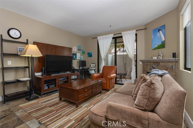 Brookstone two bedroom two full bathrooms condo in Huntington Beach. This is two bedroom ensuite. The unit is all one level and the lovely kitchen with eating area has been remodeled not too long ago with some pull out draws, one deep sink and granite like counter tops. Fire place in the living room and a nice patio off of it. There is also a patio off the primary bedroom. Ceiling fans in both bedrooms. One of the bedrooms has wood like blinds and both bathrooms has newer vanities also. Slate tile in kitchen, living room and hallway except for the bedrooms which are carpeted. Two master suites and both bathrooms have tubs and showers and neutral color tile floors. Sprinkler system in the ceilings in case of fire, 1 car garage and 1 assigned parking space. Association dues cover cable, internet, trash, pool, landscaping and maintenance of common areas. Complex is tucked away and is quite quiet . It has a swimming pool and spa with outdoor shower and bathroom facility. Washer/Dryer is approximately about 3 years old and is included with the purchase. BUYER TO VERIFY ALL INFORMATION IN THE MLS.