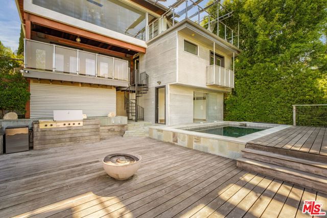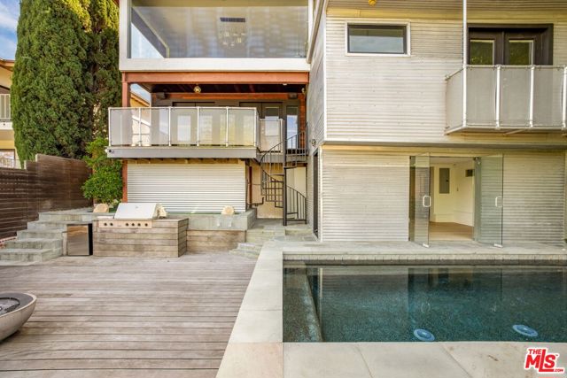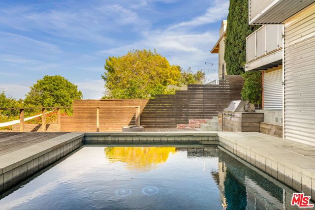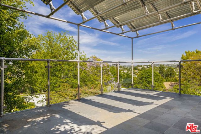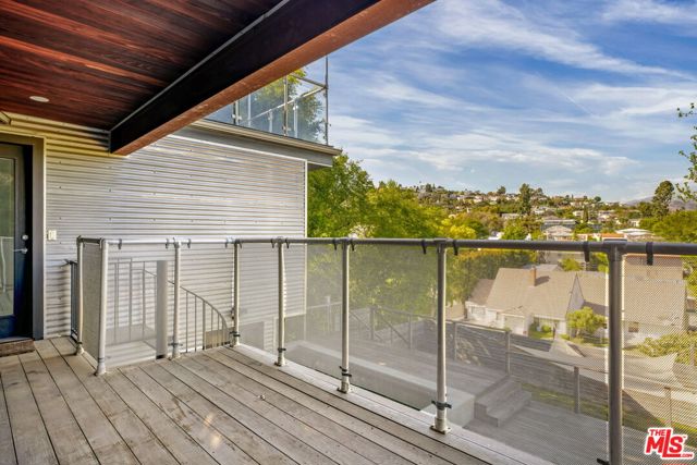 A rare urban oasis in the heart of Los Feliz, this stunning entertainer's dream offers panoramic views, exceptional privacy, and a highly flexible layout. The home features 6 bedrooms and 5 bathrooms, plus a private pool room or guest suite overlooking the pool. Spanning approximately 3,880 sq ft (title reflects 2,966 sq ft), the options are limitless. Set on a quiet cul-de-sac with a through-lot, the property captures sweeping views of Griffith Park and the Los Feliz Hills through a dramatic wall of windows. There is a large single car garage at the property's entry level and an additional 4 car garage at the bottom of the property. Designed for indoor-outdoor living, the home offers three exterior spaces, including a recently built deck with a saltwater pool, outdoor fireplace, and built-in grill ideal for entertaining. A dedicated pool room includes a spa-style steam shower and full bath. Inside, the spacious floor plan provides privacy and versatility with a separate office and bonus area suitable for a gym or studio. The chef's kitchen is outfitted with new appliances, dual sinks, a secondary refrigerator, 6-burner range, and wine cooler. The primary suite features a private balcony and oversized jacuzzi tub. Additional highlights include dual HVAC systems, a security system, and LG washer/dryer. Located in the Franklin school district and just minutes from local shops, dining, and Griffith Park. All information to be verified by tenant and/or tenant broker.