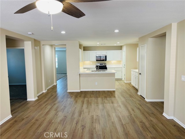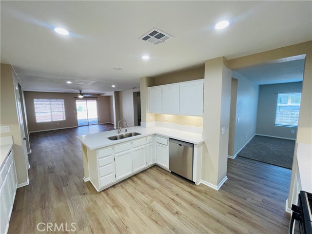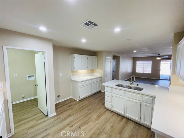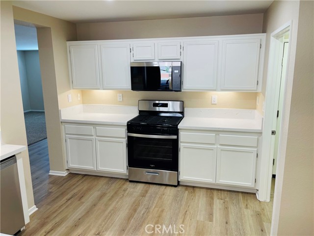 Beautiful 3 Bedroom, 2 Bath, 2 Car Garage, Single Story, home in West Hemet (Just outside the 4 Seasons Gated Community). This beautiful 2003 built home has approx. 1749 sq/ft of living space with all new interior paint, new flooring throughout, new counter tops in the kitchen and bathrooms, new appliances, new blinds and so much more! For privacy, the primary bedroom is separated from the other 2 bedrooms by the family room & kitchen area. The large front room as you walk in is perfect for your dining table and formal living room furniture. The front and back yards are fully landscaped and the backyard has a patio and patio cover ready for your BBQ and outdoor furniture. A Must See!