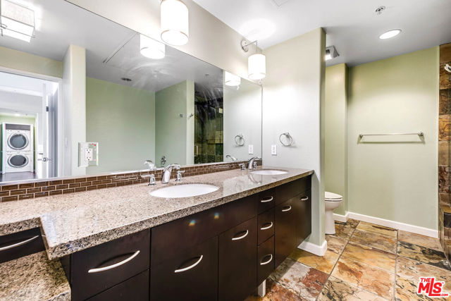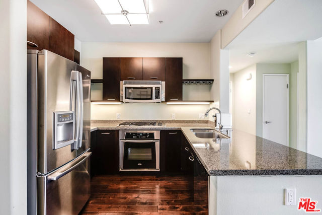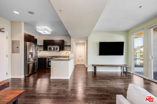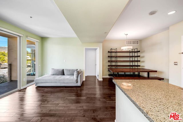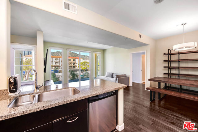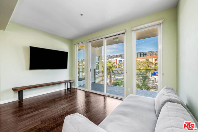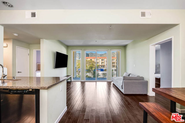 Step inside and feel instantly at ease in this beautifully updated, move-in-ready condo located in the sought-after Burbank Collection in the heart of downtown Burbank. Filled with natural light, the open-concept layout features rich hardwood floors with cork underlayment for added comfort and sound insulation. The living and dining areas flow seamlessly, highlighted by a statement chandelier, perfect for both everyday living and easy entertaining. The kitchen offers granite countertops, quality appliances, and ample cabinetry, blending style and functionality. Two spacious bedrooms are paired with updated bathrooms, including a guest bath with a tile shower/tub combo and a serene primary suite with a frameless walk-in shower and soaking tub. Enjoy a private balcony with rare views of the Burbank hills, an ideal spot to relax. Additional features include newer HVAC, water softening system, in-unit washer/dryer, and two side-by-side parking spaces with storage. Offered semi-furnished with select pieces, this home provides added convenience. Community amenities include a pool, fitness center, putting green, lounge, and landscaped courtyards. Enjoy a prime location just moments from Burbank Town Center, popular dining, and entertainment including the AMC Theater offering a seamless blend of comfort, convenience, and elevated living.