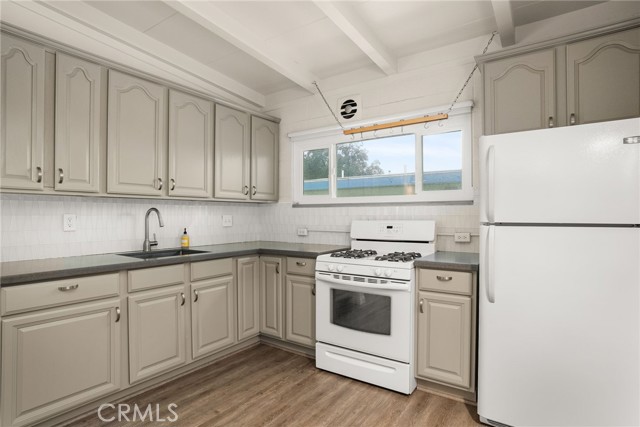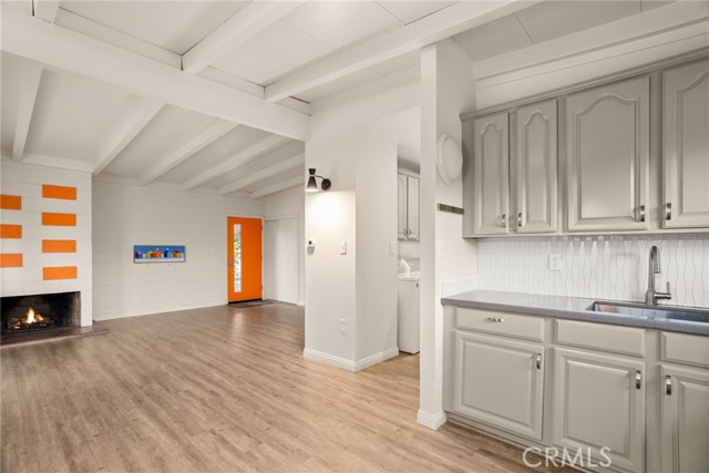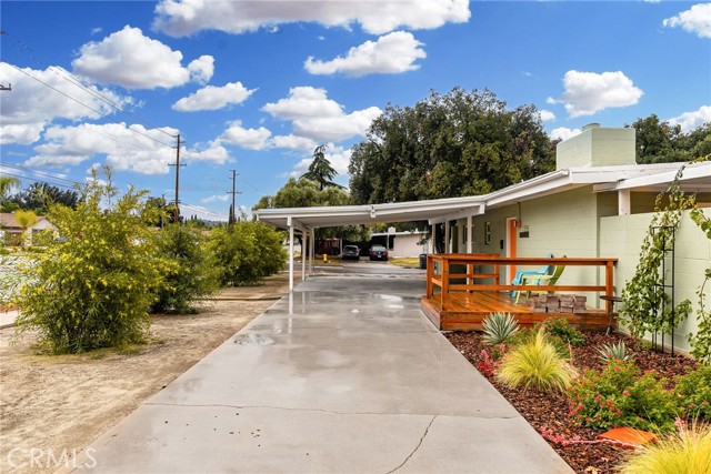 Single story mid-century home one block from the University of Redlands. This 3 bed, 2 bathroom home has it's own small, private yard and an attached carport. There is central heat and air, and each bedroom has it's own split system air conditioner with heat pump. The fridge, washer and dryer are included. The kitchen features quartz countertops and updated cabinets. Their is luxury vinyl flooring throughout the entire home, and all of the windows were replaced in 2023. Drought tolerant landscaping keeps water bills down in the summer. This block home with exposed beams has lot's of character throughout. One bathroom features a shower with tub, and the second bathroom has a walk in shower.