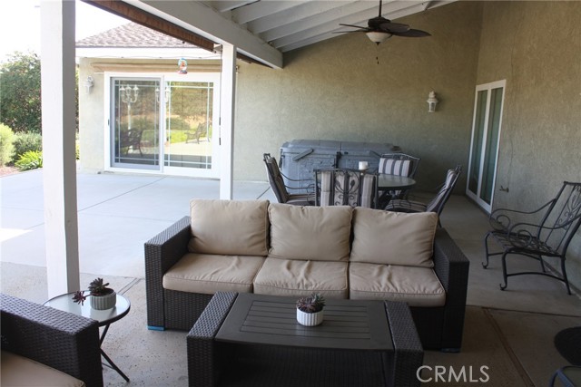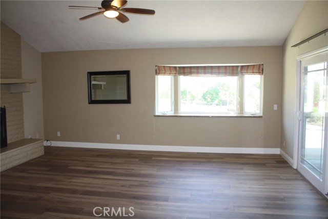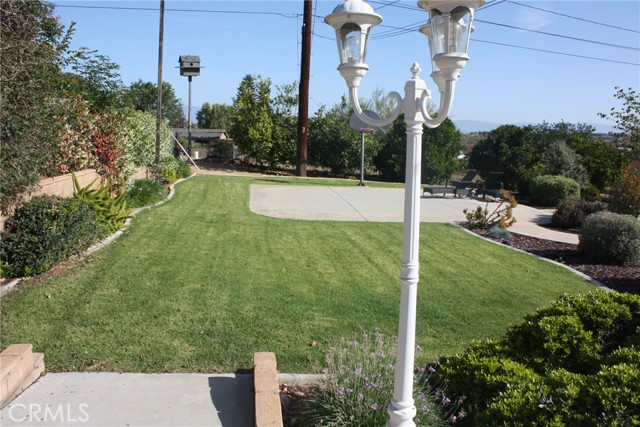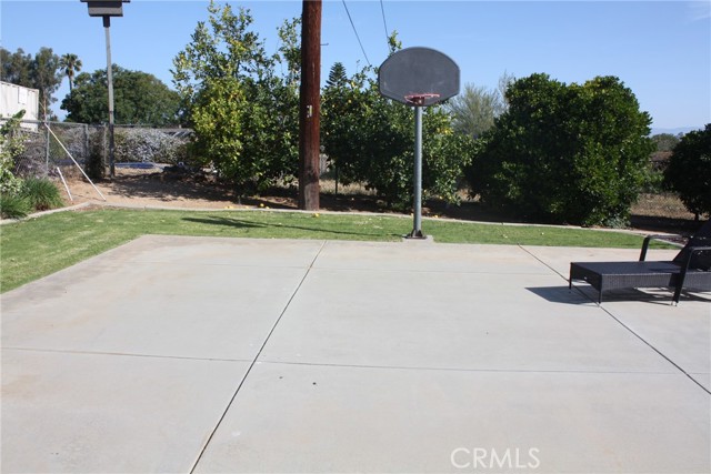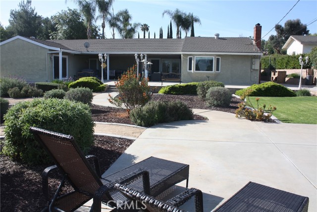 Woodcrest location; located at the end of a Cul-de-sac. This single story 4-bedroom 2 bath home has been updated and sits on over 1/2 acre. New Optimax Hybrid Resilient wood flooring that is free of PVC. Tile in kitchen, bathrooms and laundry area. Large living room that opens to a large, covered patio makes it perfect for entertaining. Large open kitchen offers an abundance of cabinets. Large Island in center of kitchen doubles as a great eating area/conversation table. Bathrooms have been updated, Manicured landscaping in front and back. Large, covered Patio with a TV, and more uncovered with lighting along the length. 3 lemon trees, 4 orange trees, DG pathways compliment various areas of many flowering shrubs that bring butterflies, various birds and bees. Half Basketball court on side surrounded by grass. Eco-Spa and Patio furniture included. Gardener included. Refrigerator, washer and dryer included.