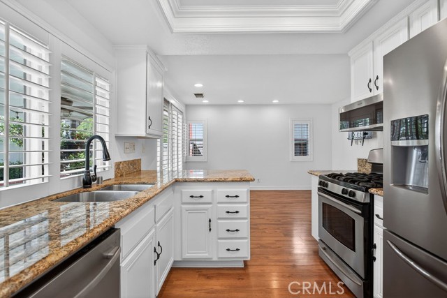 Available NOW! Discover the ultimate lifestyle in this pristine 3-bedroom, 2.5-bathroom home in the highly sought-after community of Rancho Santa Margarita. This residence has been beautifully refreshed with a crisp palette of new interior paint and plush, brand-new carpeting up the stairs and throughout the second floor. The wonderful living areas in the home include a front living room with a gas fireplace, a separate dining room, and a family room off the kitchen with direct access to the backyard. The heart of the home features a refreshed kitchen with granite countertops and stainless-steel appliances. A powder room and direct access to the 2 car attached garage (with laundry inside) completes the first level. Upstairs you’ll find a nicely updated main guest bathroom and two guest bedrooms featuring spacious closets. While the primary suite serves as a true sanctuary, offering a completely renovated walk-in shower, an upgraded vanity, walk-in closet, and breathtaking views of Saddleback Mountain from your very-own balcony! Beyond the interior, the private backyard provides an ideal setting for outdoor entertaining, complete with a courtyard between the living and dining rooms, covered back patio, two separate areas with turf, and the unique option of an outdoor spa/hot tub for those looking to unwind in style. Location is truly paramount here; you are just a short stroll away from local schools, the scenic RSM Lake, and Central Park. As a resident, you’ll also enjoy full access to the SAMLARC master-planned community’s premier amenities, including the beach club, tennis courts, water park, and extensive trail systems. With many updates throughout, this home offers the perfect blend of safety, comfort, and convenience in one of Orange County’s most picturesque settings!