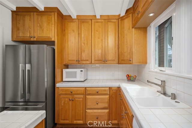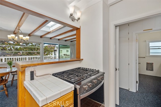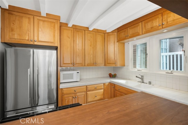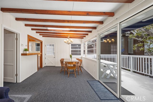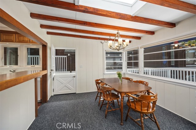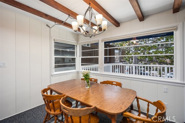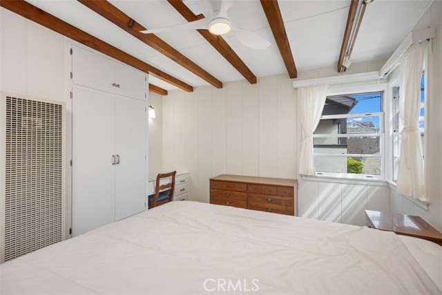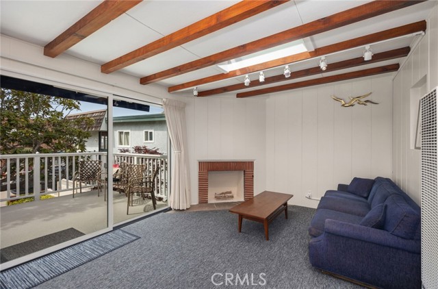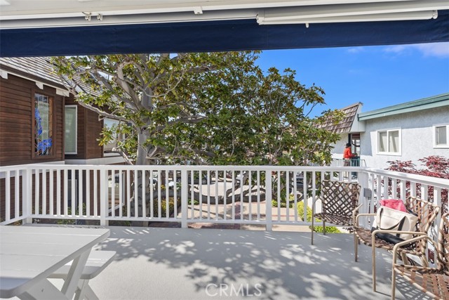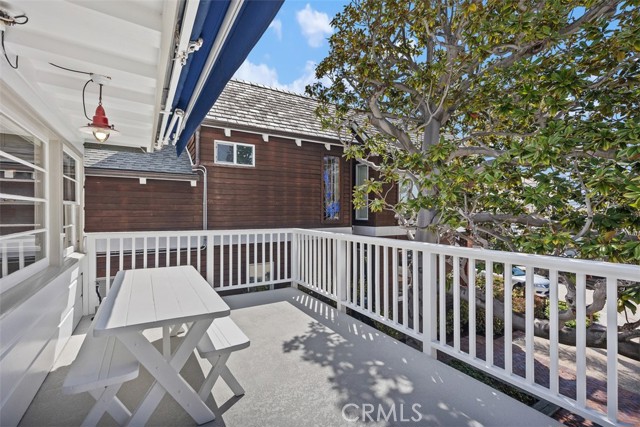 Welcome to 122.5 Opal Avenue, a charming upper-level residence ideally located in one of Balboa Island’s most coveted spots—just moments from the waterfront. This 2-bedroom, 1-bath home captures the essence of classic island living, blending timeless character with thoughtful updates. Inside, you’ll find original 12-inch knotty pine paneling, painted white to brighten the space, along with beautiful wood-beamed ceilings that add warmth and architectural charm. The vintage-inspired bathroom features classic white tile with blue accents and offers generous space and functionality. The remodeled kitchen is both stylish and practical, showcasing updated maple cabinetry and modern appliances while maintaining the home’s coastal cottage feel. The inviting living area centers around a cozy faux fireplace and flows effortlessly out to a spacious, treehouse-style deck nestled among a mature Magnolia tree—creating a private, serene setting perfect for relaxing or entertaining. While there is no garage, the property includes a large shared parking area and is set back from the street, offering added privacy. Just a short stroll to the bay, local shops, restaurants, and the ferry, this home delivers the best of Balboa Island living in a truly special setting.